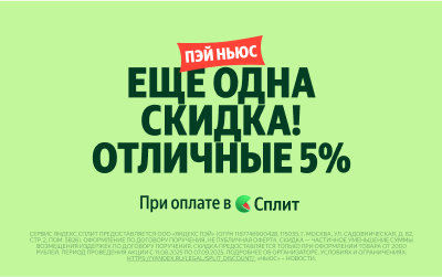 1. С 11 августа по 7 сентября 2025 г. при оформлении покупки на сайте www.ecco.ru или в фирменном розничном магазине ECCO (ООО «ЭККО-РОС») покупатель получает дополнительную скидку 5% на весь заказ при выборе способа оплаты «Яндекс.Сплит». Дополнительная скидка 5% рассчитывается и предоставляется при переходе на страницу оплаты в виджете «Яндекс.Пэй» и не отображается в кассовой системе ЕССО (ООО «ЭККО-РОС»).