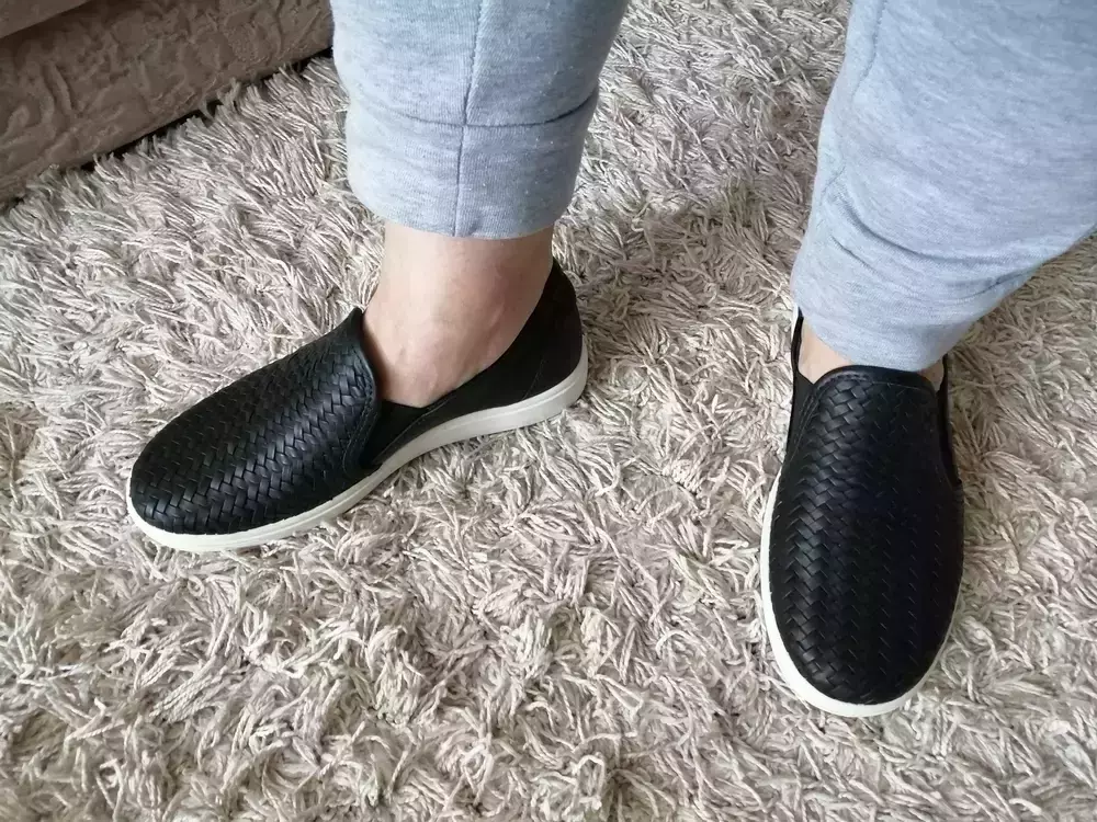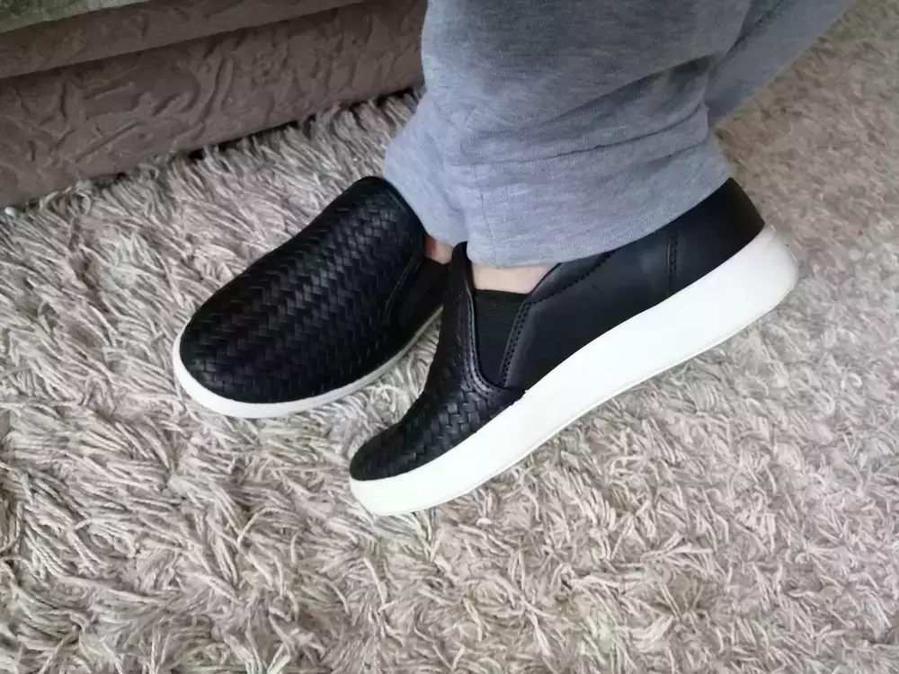 Слипоны пудровые, на свой размер 39-40, взяла 40 размер, что б были чуть свободные. Слипоны мягкие, удобные. Первые дни немного натирали ноги, но потом, ходишь как будно в тапочках.
