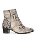 Эти стильные ботильоны созданы для яркой, дерзкой и привлекательной женщины! Созданные с использованием новейших разработок в области производства обуви, они обеспечивают превосходную поддержку стопы и амортизацию в течение всего дня. Широкий и устойчивый 55-миллиметровый наборный каблук и необычная текстура, имитирующая кожу рептилии, придают ботильонам современный характер, полностью соответствующий тенденциям городской моды этого сезона.